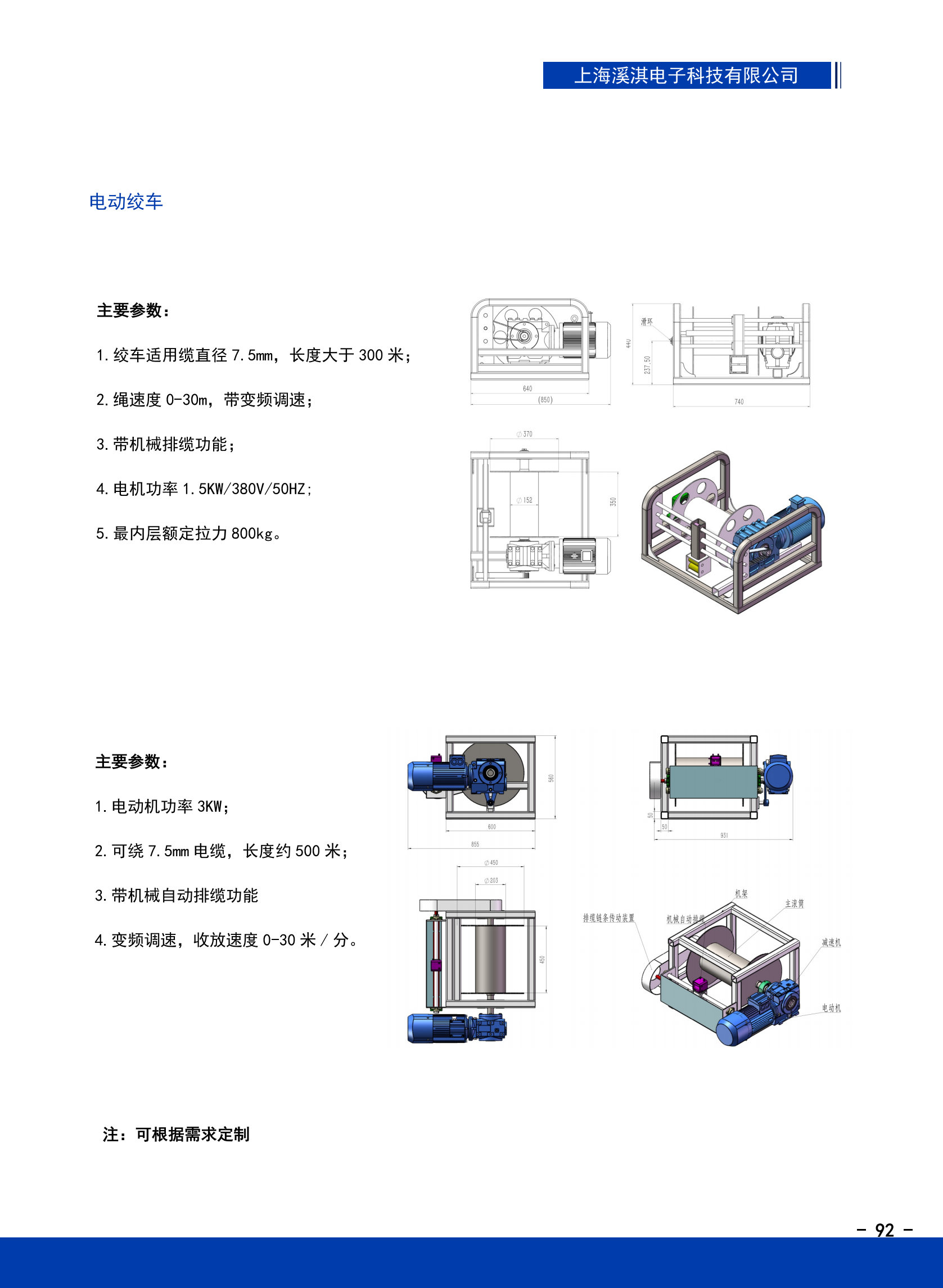 用于短距离水下设备仪器的吊放,轻便易携带,并且可以根据客户需求加装光、电滑环连接器,以及定制,而满足不同的需求。